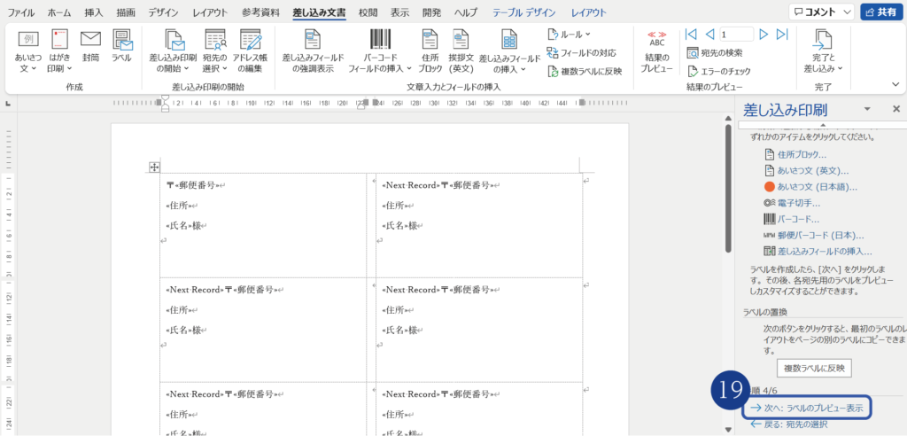 “次へ:ラベルのプレビュー表示”をクリックします。