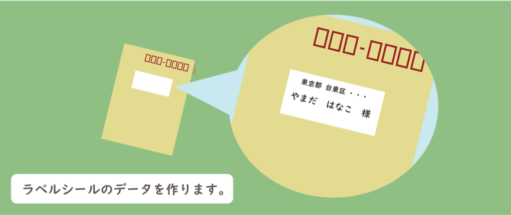 Excelで作成した住所録をWordによってラベルシールに印刷したり、年賀状の宛名として使用するなど、Excelのデータを元にWordで使用できるような活用方法について説明します。
